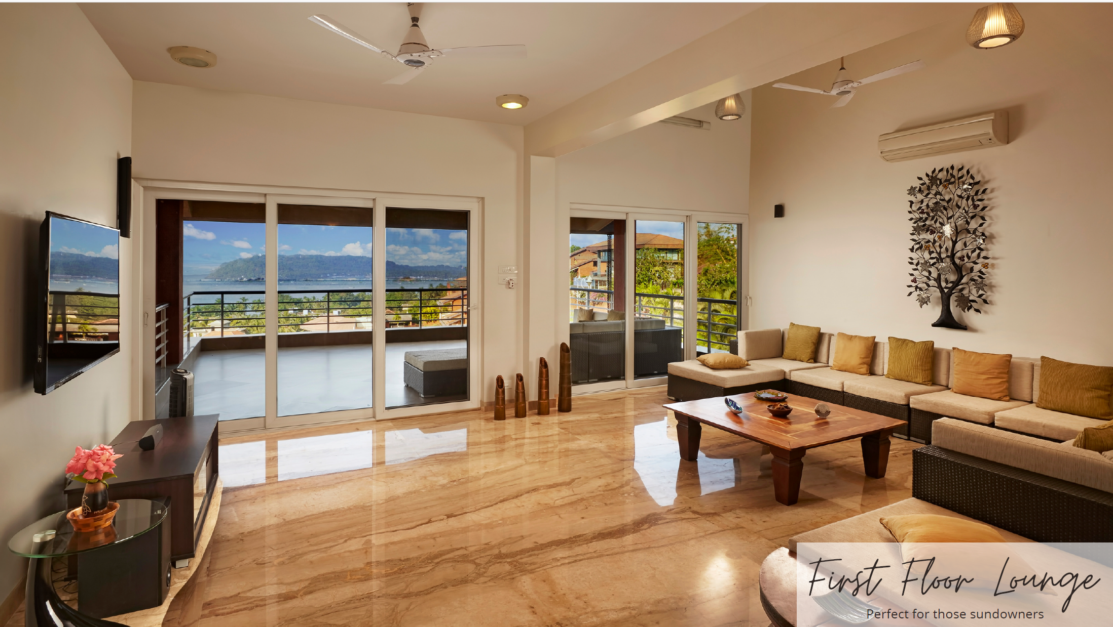 Italian marble interiors; 10-seater dining; large living & lounge